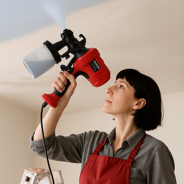 Speciální tryska vytváří jemnou mlhu barvy, která se rovnoměrně usazuje bez šmouh nebo skvrn. Nástroj vytváří pocit, že každá oblast se maluje sama „tak, jak má“, bez ohledu na materiál, zkušenosti uživatele nebo směr pohybu.