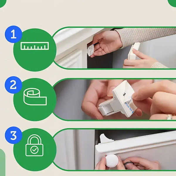 Rozlučte se se složitou instalací a nepořádným vrtáním! S MAGCLASP je instalace rychlá a bezproblémová. Jednoduše odlepte lepicí fólii, nalepte zámky a zámkové desky na místo a nechte silné lepidlo bezpečně přilnout k vašemu nábytku. Není potřeba žádné nářadí ani kování, což je ideální řešení pro zaneprázdněné rodiče na cestách.