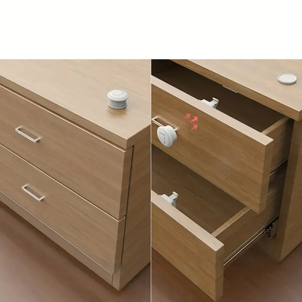 Pomocí magnetických klíčů (součást dodávky) snadno otevřete zamčené skříňky a zásuvky. Připevněte základnu magnetického klíče poblíž, kde je mimo dosah nebo dohled, ale snadno dostupný pro dospělé. Tím zajistíte, že budete mít vždy rychlý přístup ke klíči, kdykoli budete potřebovat odemknout skříně nebo zásuvky, aniž byste se museli obávat, že jej ztratíte.