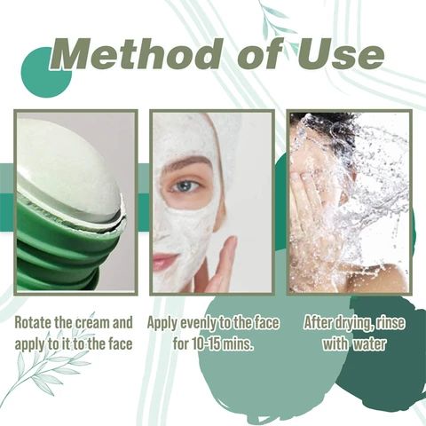 Rovnoměrně naneste na suchý obličej, vyhněte se rtům a víčkům. Po aplikaci nechte působit 10–15 minut do zaschnutí. Opláchněte teplou vodou a jemně vmasírujte do pokožky.